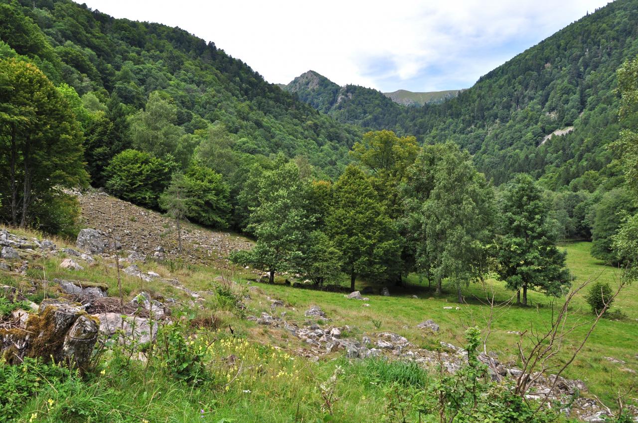 Les dernières glaciations ont laissé des traces dans les vallées en amont creusées en forme de paliers descendants, laissant en aval nombre de moraines et de tills. Ces surcreusements ou ces matériaux mal déblayés sont à l'origine de lacs parfois de tourbières. L'érosion glaciaire a laissé de grandes vallées larges et un haut massif parsemé de ballons arrondis.