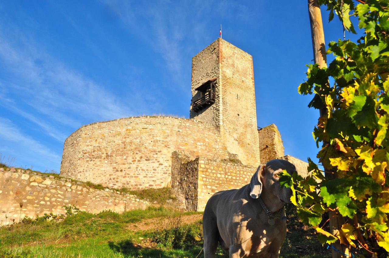 Saxo, mon braque de Weimar, garde le château du Wineck :=)