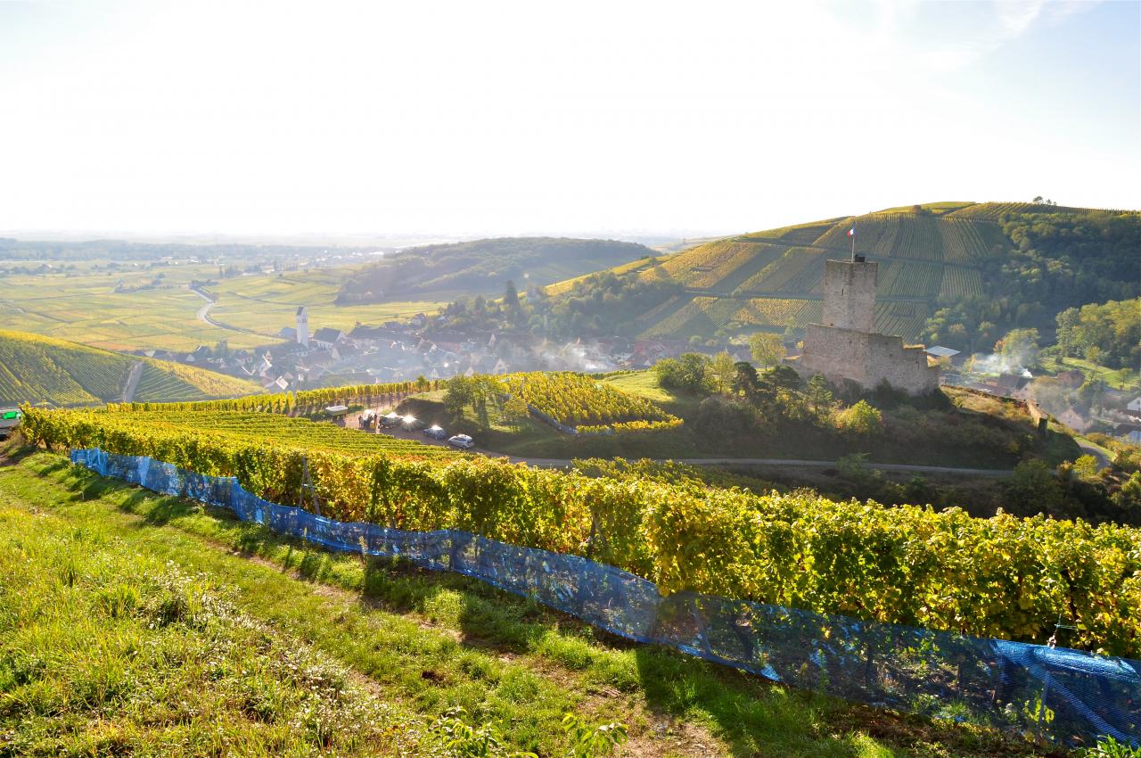 Le château du Wineck, Katzenthal et au fond Colmar