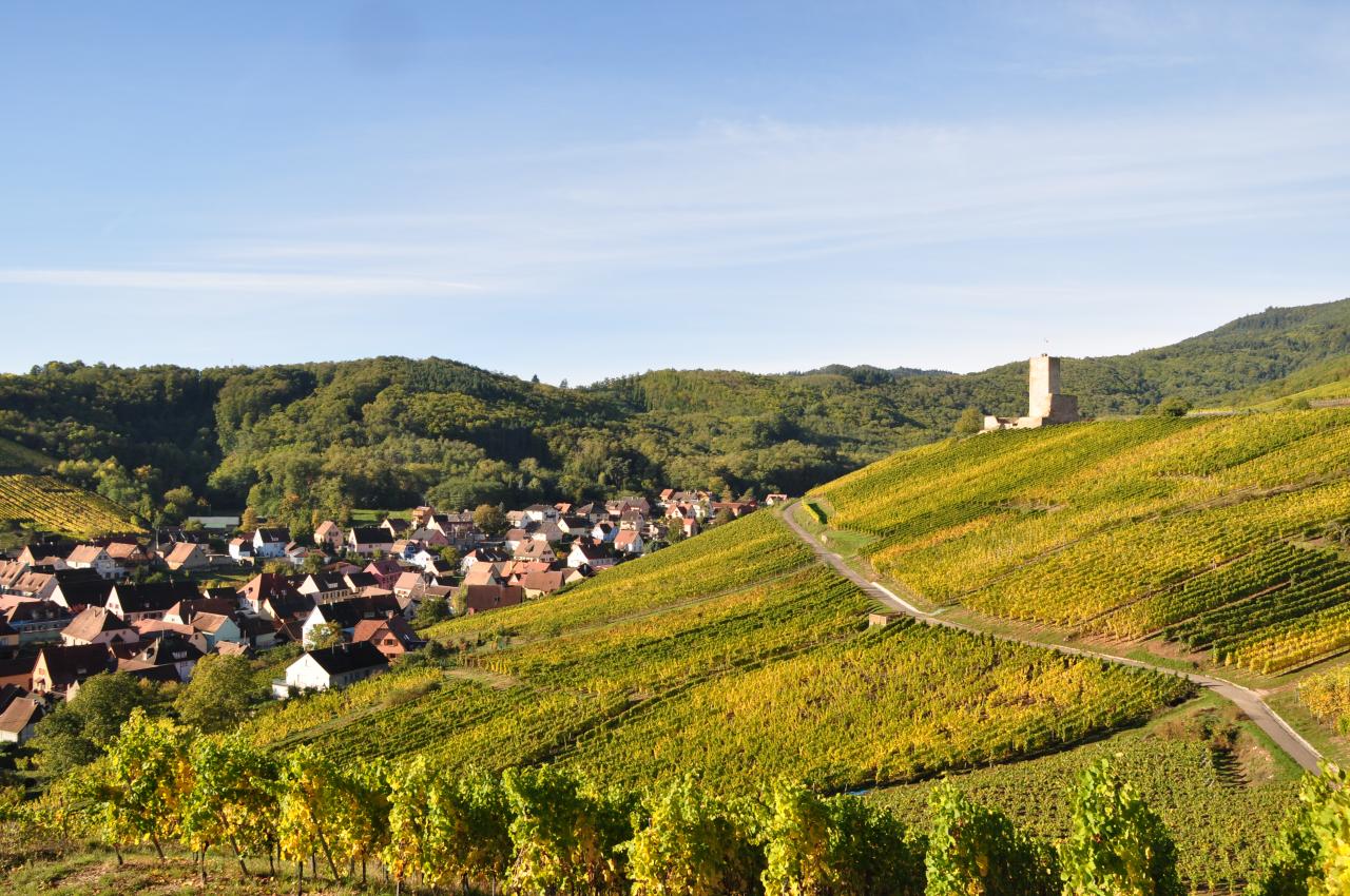 Le château du Wineck "assailli' par les vignes, surplombe Katzenthal